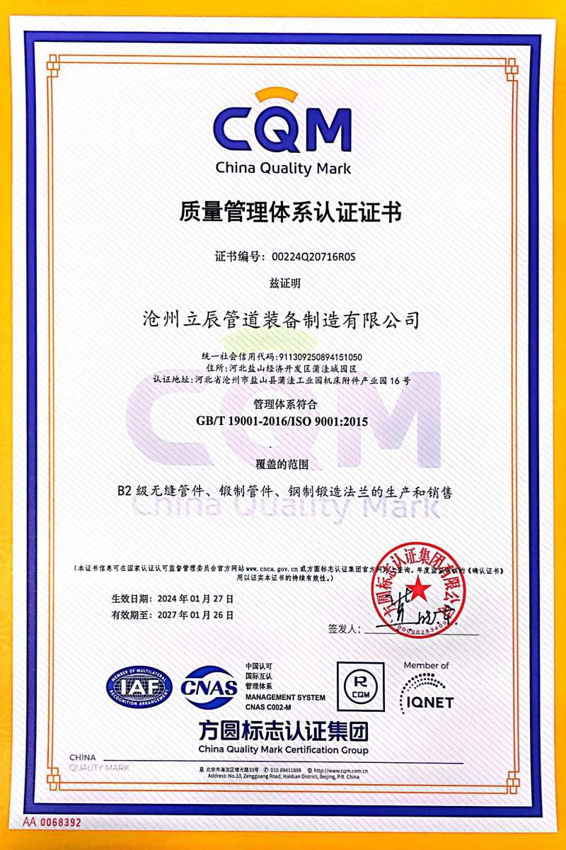 同步通過(guò)的ISO9001質(zhì)量管理體系認(rèn)證,則是對(duì)企業(yè)標(biāo)準(zhǔn)化、國(guó)際化管理能力的認(rèn)可。滄州立辰管道通過(guò)引入全過(guò)程質(zhì)量控制體系,從供應(yīng)商篩選到成品出廠實(shí)施精細(xì)化管控,確保每一件產(chǎn)品均符合國(guó)內(nèi)外嚴(yán)苛標(biāo)準(zhǔn),為客戶提供“零缺陷”產(chǎn)品體驗(yàn)。